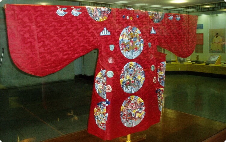 A visitor will be surprised to see the Wanli Emperor resting with the coffins of two Empresses, one on each side. The Emperor was actually buried in 1619 with Empress Xiaoduan who preceded his death by a few months. However, his only son was by a concubine, Xiaojing, who died eight years earlier and was buried in a concubine grave. The concubine was elevated to Empress status by her grandson and thus re-buried with the Emperor Wanli.